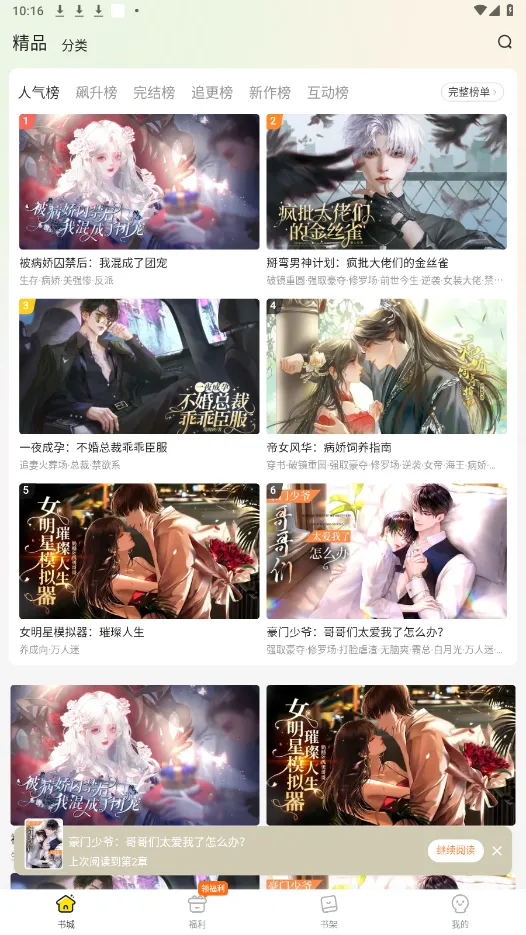 打开游戏,进入书城界面后,点击福利
