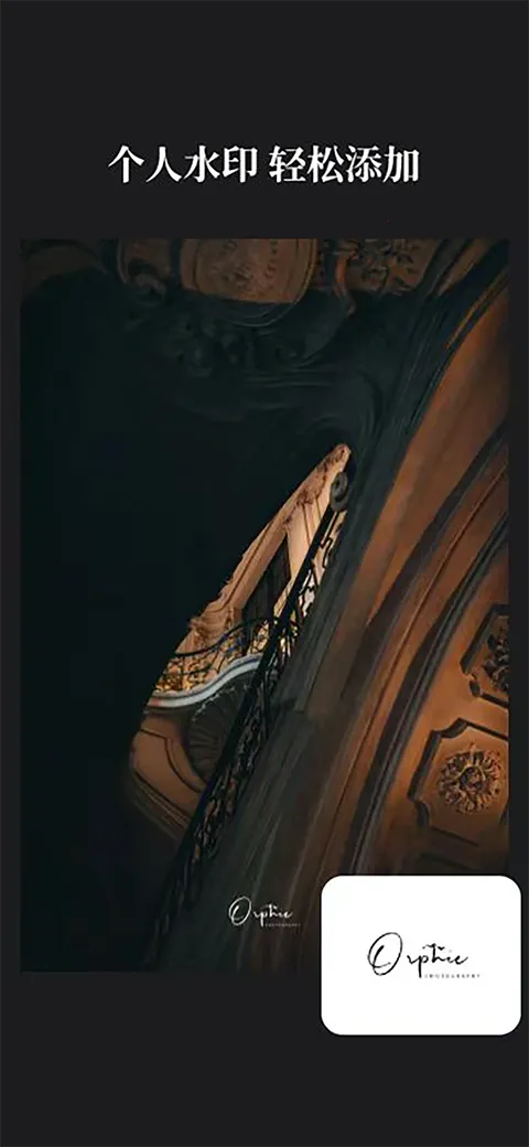 个人水印轻松添加:可将摄影师个人水印添加到我的水印中,批量添加个人水印,让添加步骤不再繁琐耗时费力。