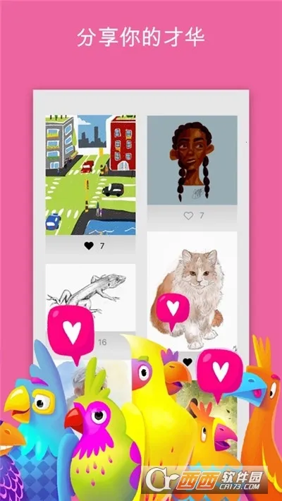 提供丰富的颜料选择,内置绘画技巧学习模块,帮助提升绘画技能并应用到实际创作中,还支持作品上传分享及收藏优秀作品。