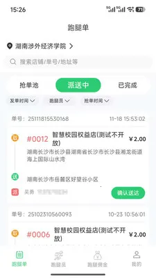 2. 在线便捷接单:申请成为跑腿后,可在抢单池接单大厅轻松获取学校周边待配送订单,在线接单操作方便。