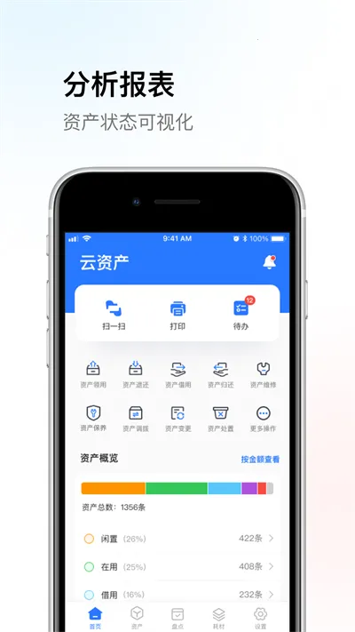精臣云资产2025官方最新版本是基于SAAS模式的固定资产管理系统,提供采购、资产管理、盘点等全生命周期解决方案,有灵活架构管理等功能,支持多方式入库、标签打印,数据云端备份,操作日志可追溯。