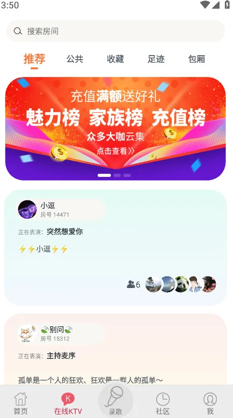 2. 沉浸式社交互动:支持多人在线合唱、实时PK,用户可创建或加入家族K歌房,与好友组队对战,增强社交趣味性。