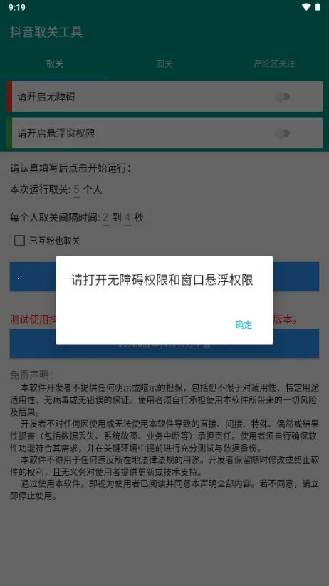 如果你想知道抖音取关工具在哪里,那我来给你介绍一下。有一类专门为抖音用户打造的辅助工具就能满足你的需求。这类工具功能超强大,能一键快速取关,全程自动化操作,只需开启相关权限就能直接用。它可以帮你快速取消对不再感兴趣用户的关注,无需手动逐个操作,还支持批量取消关注,大大提升操作效率。而且能通过算法识别长时间未更新或互动少的用户,方便你批量管理。使用起来很方便,在宝贝游戏网下载安装软件,同意访问权限,开启无障碍和悬浮窗权限,在取关页面按需求填写运行取关人数和间隔时间,点击开始运行即可。有了它,就能轻松管理抖音关注列表,让你的抖音社交更随心。