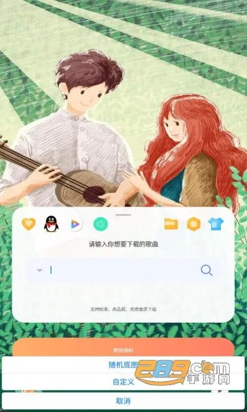 3. 应用UI界面采用插画设计,简约清新,支持全网音乐免费下载320kps无损flac音质,还具备网络换肤功能,数十款皮肤任意挑选。