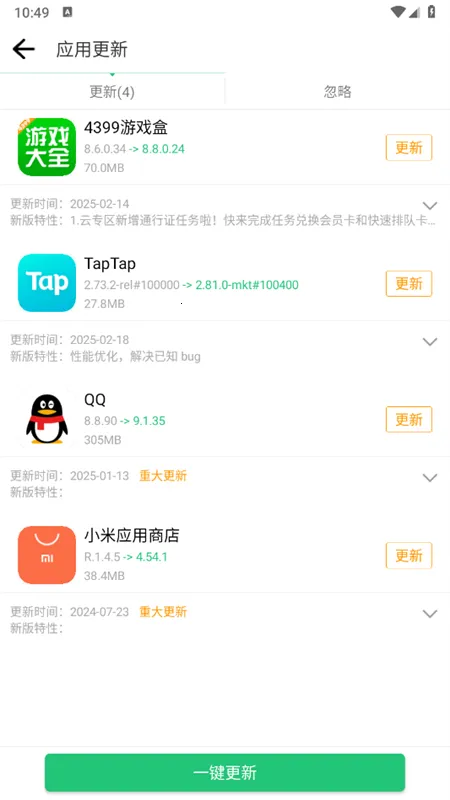 3. 方便管理:支持应用程序的卸载、安装、升级,能清晰查看手机应用更新情况,高效管理手机内存。