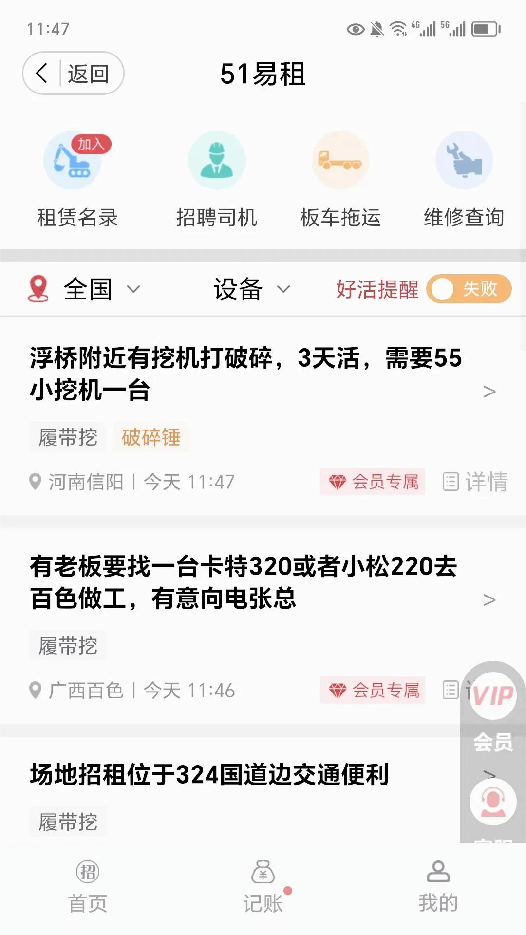 全面业务覆盖:不仅涉及出租找活、司机招聘,还涵盖维修保养、二手买卖、机械抵押贷款等工程机械后市场全流程业务,形成完整服务生态链。