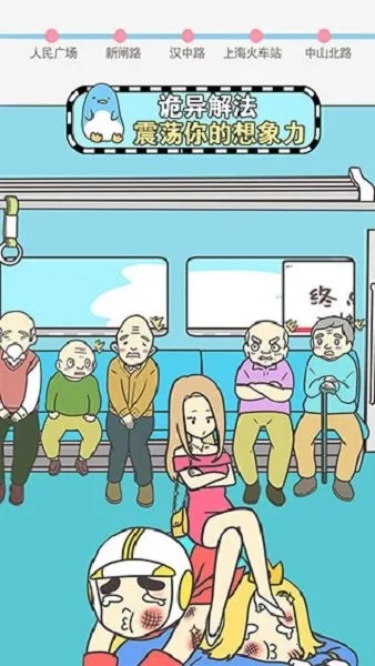 想知道在地铁上如何巧妙抢座吗?《地铁上抢座是绝对不可能的》这款魔性解谜闯关游戏就能满足你!它以地铁抢座为主题,画风诙谐有趣。游戏设有25个独具魅力的关卡,玩法类似常见解谜游戏。玩家要在拥挤的地铁场景中,通过寻找隐藏道具,用各种合理方式抢座占座。比如点击黑色西服哥能让他让座,给老太太回春水可让其变妙龄少女吸引老头们,从而腾出空位。还有很多独特事件触发的藏品等你收集。在这里,你能体验到戏剧性的故事关卡,感受脑洞大开的抢座方式。发挥聪明才智,合理利用道具,就能在地铁上成功占座,体验别样解谜乐趣,还能发扬尊老爱幼、见义勇为的品格。v2.00版本更是添加了新关卡——特殊线路,快来免费下载开启你的抢座之旅吧!