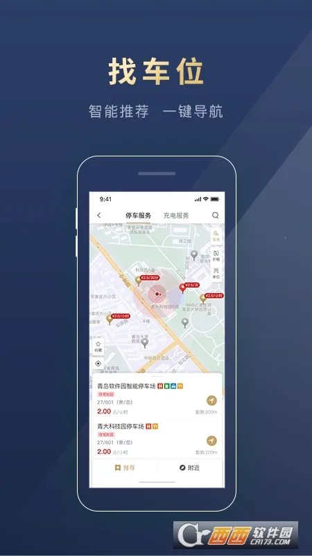 2. 导航出行超便捷,具备泊位搜索功能,通过地图智能语音导航,快速指引您到达停车地点。