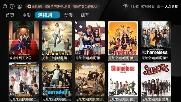大众影视 TV 是便捷追剧平台,资源丰富,涵盖连续剧、综艺等多种类型。支持自定义播放设置,可分类或搜索找片,能收藏、缓存,还能装到电视大屏观看,有历史播放记录,画质高清,自动跳片头片尾。