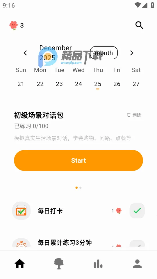 4. 趣味学习:设有成长养桔子树、每日任务领小红花的趣味机制,搭配错误本、收藏本等个性化工具,让学有动力不枯燥,全程无广告干扰,碎片化时间就能轻松提升英语语感和实用能力。