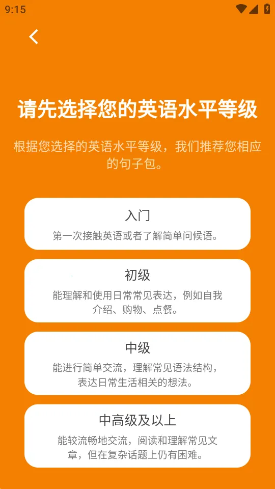 2、进入软件选择您的英语水平。