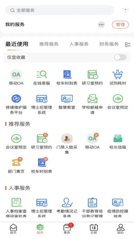 2. 提供随时随地学习、生活、办公和个人信息服务的窗口,涵盖通知公告、培训讲座等多样生活服务类应用。