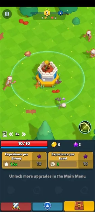2. 丰富成长体系:可升级弓箭手和塔,提升战力,收集战利品卡片强化自身。