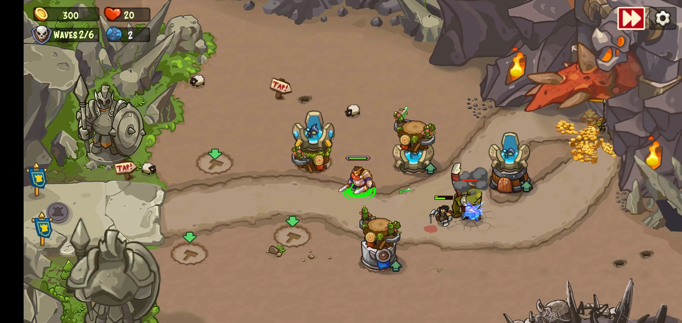 3. 英雄战士助力:有英雄和战士一同参与保卫王国的行动,为玩家的防御增添强大助力,使战斗更加精彩。