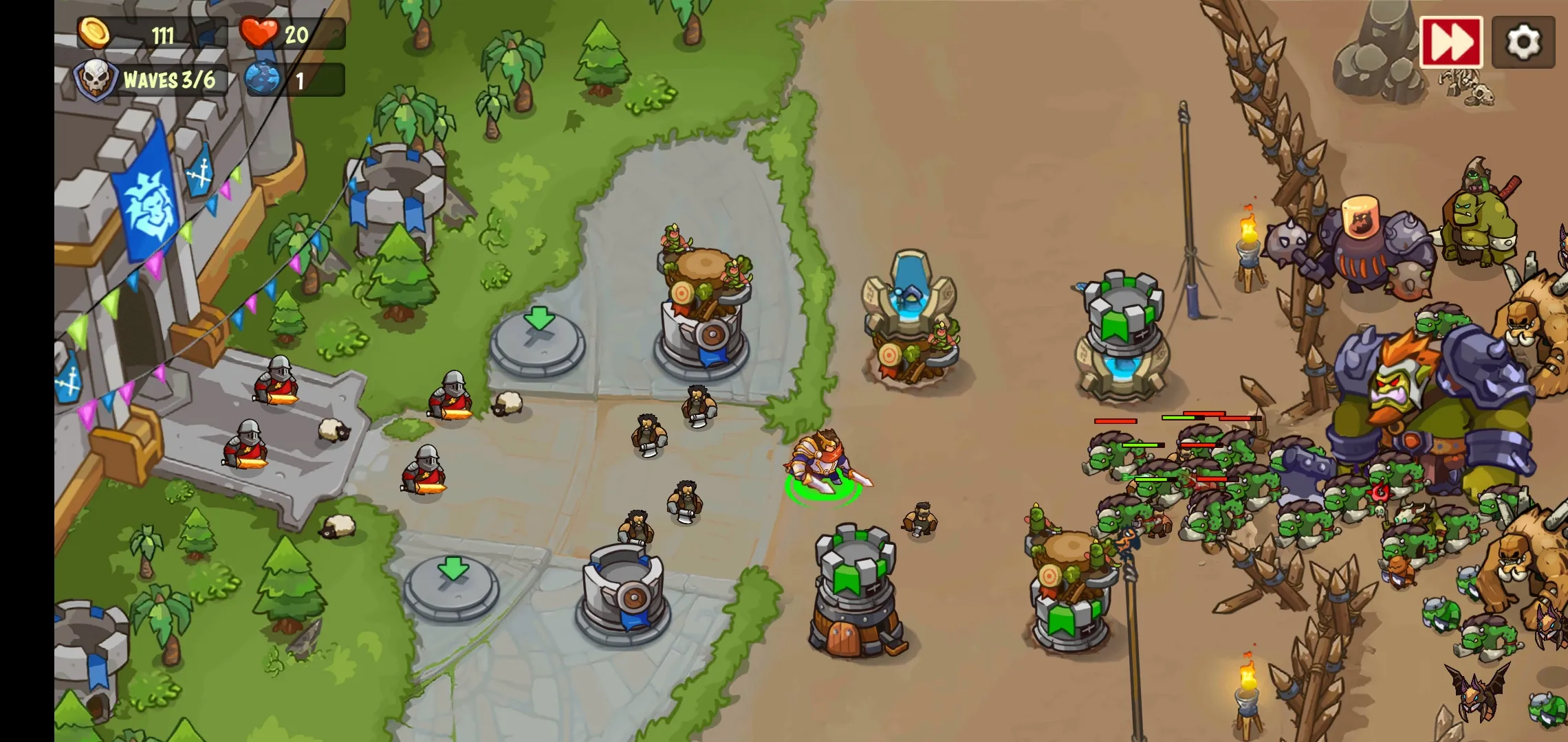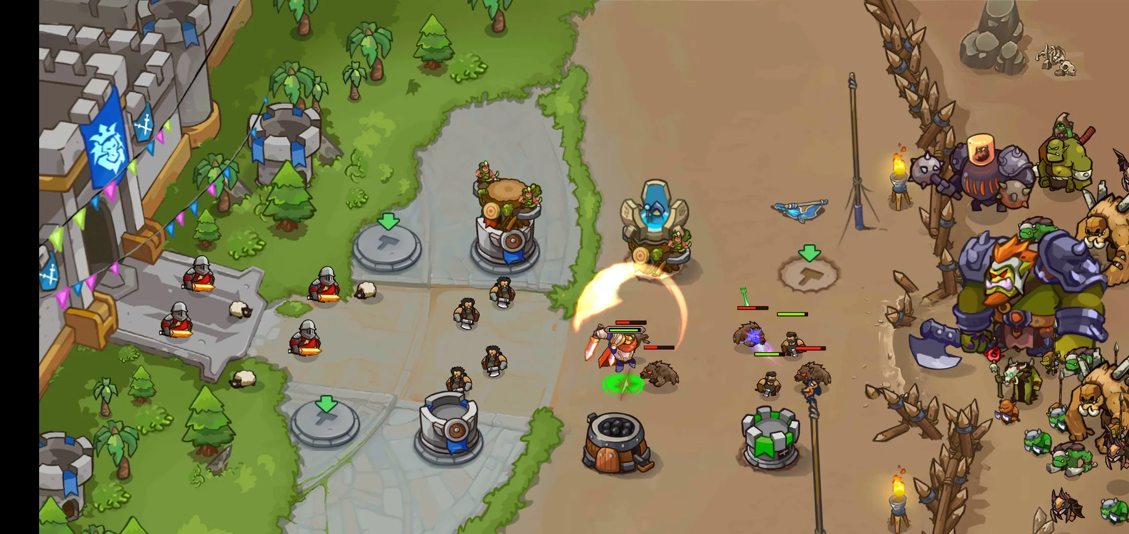 王国防御:战争前线是一款独特塔防游戏,能通过堆叠炮塔组合改善战术,为关卡制定最佳策略,玩家可投身史诗战斗,指挥英雄和战士保卫自己的王国。