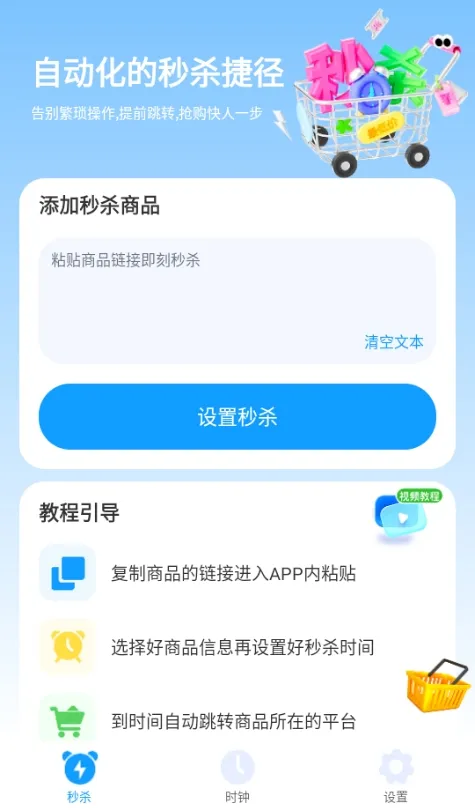 1. 操作简单便捷:仅需复制商品链接,设置好秒杀时间就能轻松开启抢购,省去繁琐步骤。