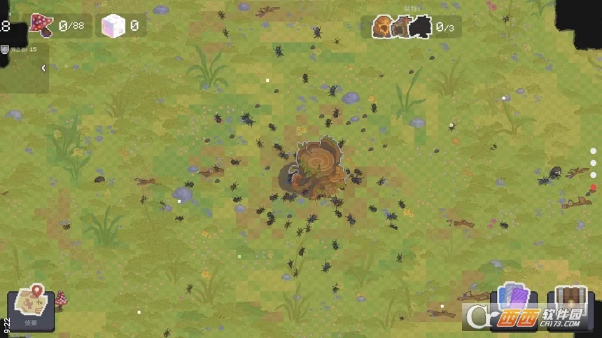 蚁群模拟器2是一款以蚂蚁为主题的策略经营游戏。玩家管理蚁群,孵化蚂蚁、分配资源扩大蚁穴,探索收集资源,击败昆虫洞穴完成任务。有多种蚂蚁卡牌,像素画风,不同地图机制,玩法有趣易上手。
