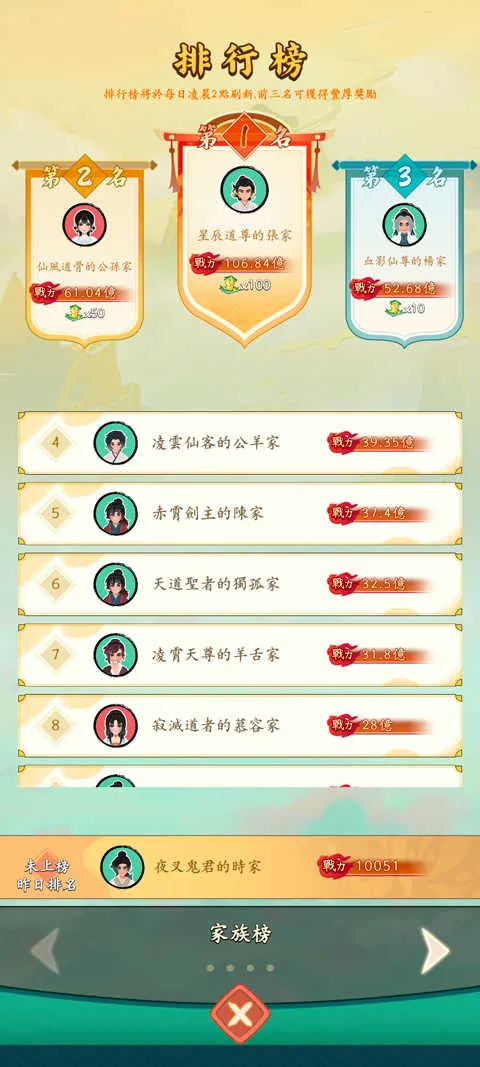 5、玩家需努力修行,以此来提升角色战力,登上排行榜。