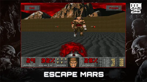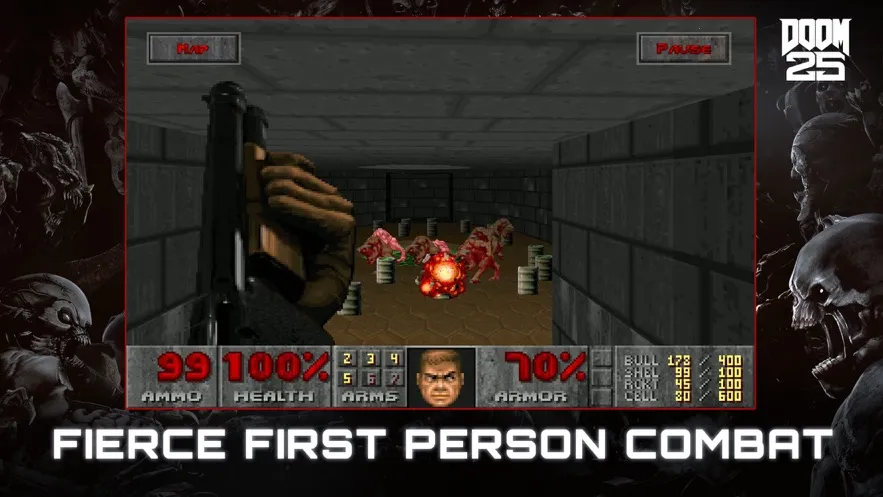 《毁灭战士永恒》是一款超刺激的射击游戏!它能带你进入被地狱恶魔入侵的未来世界,让你化身强大战士,与恶魔殊死搏斗。游戏玩法丰富多样,战斗时轻触右侧屏幕就能攻击,点击屏幕底部头像可切换武器。探索途中会随机出现强力道具,助你完成关卡。还支持与好友组队或和全球玩家竞技对战。它的亮点更是一绝,有枪械、符文、机甲、魔法4大战斗体系,百余种装备可随心组合,打造专属风格。采用PBR次世代渲染技术,逼真场景搭配契合音效,营造沉浸式恐怖战斗氛围。新手教程简单易懂,下载进入游戏后,点击SINGLEPLAYER开始,再点NEWGAME就能在火星和地球大战恶魔啦。还有各种作弊码,比如显示FPS、解开秘密道具等,能让你游戏体验更爽。而且外星生物和恶魔有弱点设定,增加了战斗策略性,快来体验吧!