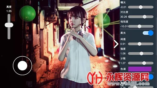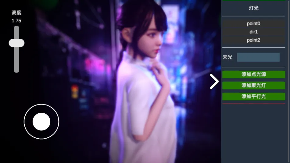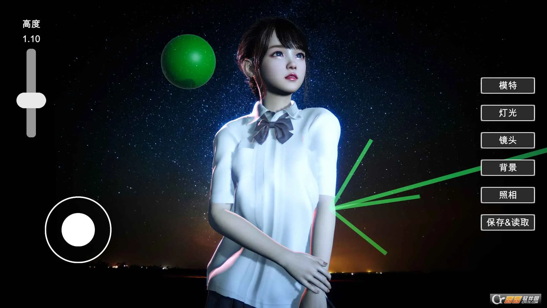 2、灯光种类多样:设有点光源、聚光灯、平行光三种灯光,可进行照明配置和调整,搭配不同镜头角度与效果,能拍出漂亮人像作品。