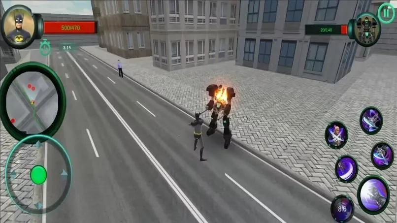 《疯狂罪恶蝙蝠安卓版》是开放世界冒险探索游戏,操控黑衣蝙蝠人在罪恶都市自由穿梭。可完成任务获奖励买武器,或驾驶载具破坏。玩法多样,有多种武器,面临危险挑战,还有攻略助你提升实力。