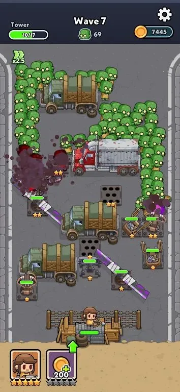 僵尸堡垒最新手机版中,你要保卫领土抵御僵尸潮。规划策略布置塔楼,用金币买塔升级。有无尽波浪挑战,可建造升级,讲究战略路径,每波幸存获奖励,快来智胜僵尸,看能坚守多久。