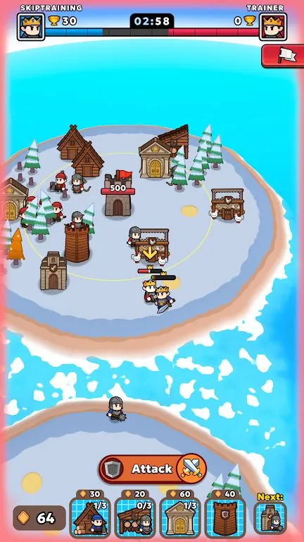 岛屿王国是一款策略游戏,玩家作为岛屿小王国统治者,要与对手决一死战。可建造升级王国、收集资源、选择建筑战略,招募多种类型单位,还能用法术攻击,通过胜利扩充卡组,体验多样策略战斗。